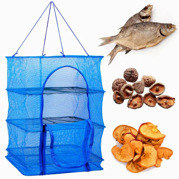 Сітка для сушіння риби, 3 яруси, 45x45x55 см, блакитна