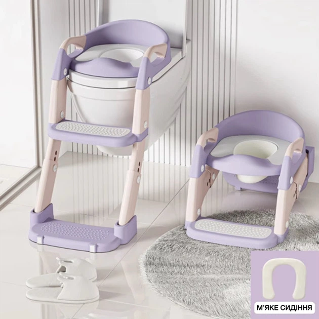 Горщик дитячий багатофукціональний 2в1 зі сходами, ручками та м'яким сидінням.