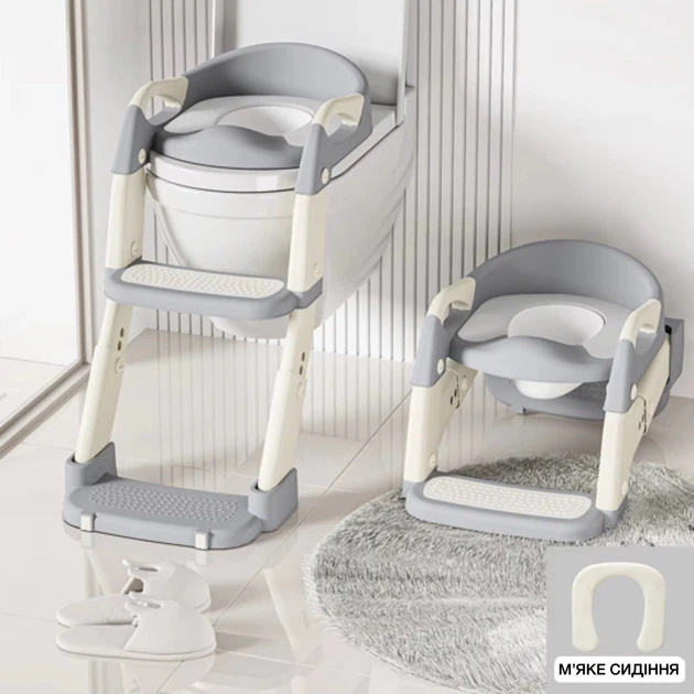 Горщик дитячий багатофукціональний 2в1 зі сходами, ручками та м'яким сидінням Сірий