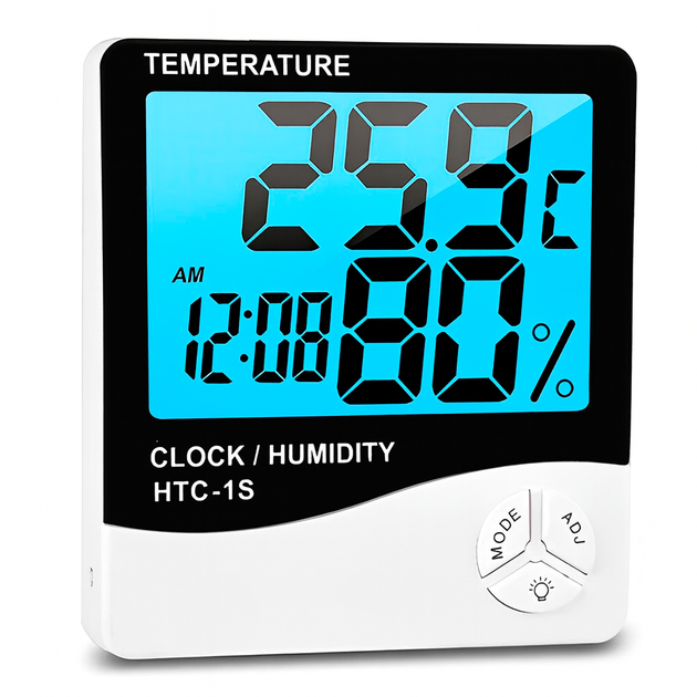 Електронний кімнатний термометр гігрометр з годинником Uchef HTC-1