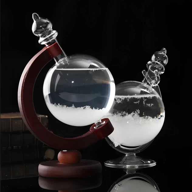 Барометр Штормгласс RESTEQ великий глобус-крапля на дерев’яній підставці, провісник погоди та стильний елемент інтер’єру