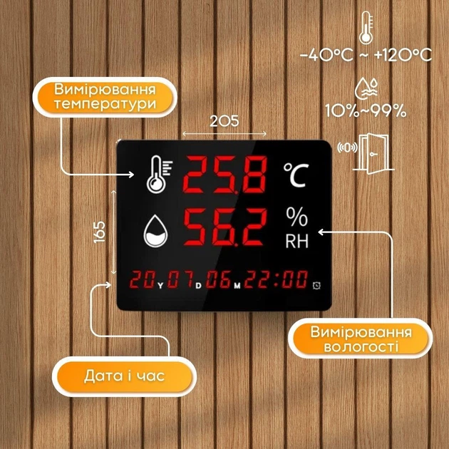 Термометр цифровий гігрометр -50~70C РК 3.8" з зовнішнім датчиком HTC-2