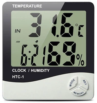 Настільний термометр градусник HTC-1 побутовий гігрометр додому годинник будильник портативна метеостанція вологість
