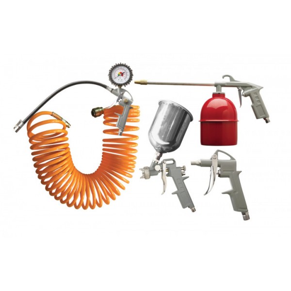 Набір пневматичного інструменту TAGRED TA103- є практичним доповненням до компресора, який можна використовувати в кожному домі чи майстерні.У набір входять аксесуари Tagred:Лакувальний пістолет з верхнім резервуаром ідеально підходить для точного фарбування лаків, акрилових і водоемульсійних фарб. Чудово працює при фарбуванні автомобіля.Так званий мийний пістолет «масляний