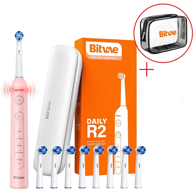 Електрична зубна щітка Bitvae R2 Rotating з футляром та 8 насадками Pink + косметичка