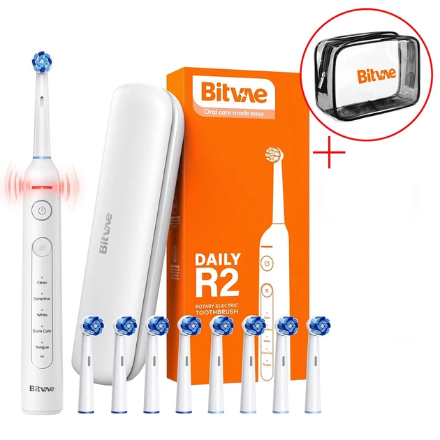 Електрична зубна щітка, що обертається Bitvae R2 з футляром і 8 насадками White