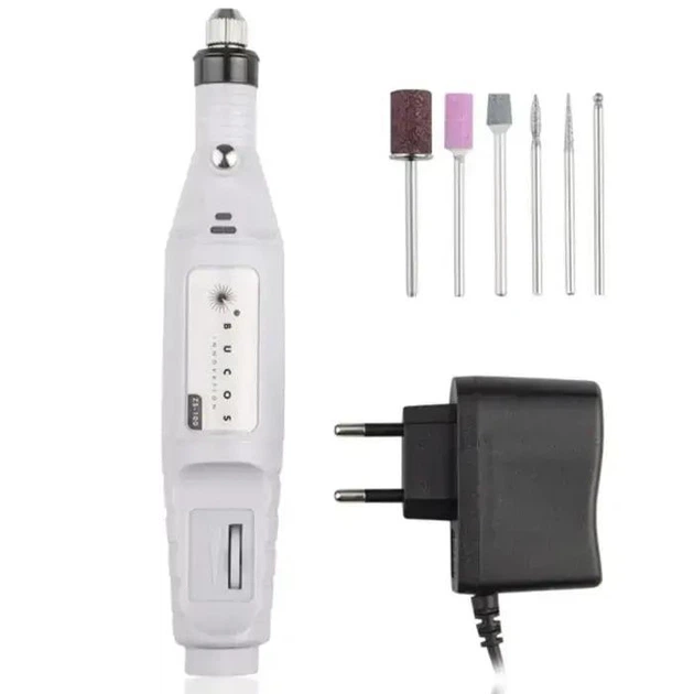 Фрезер-ручка для манікюру BUCOS ZS-100 20000 об + 6 покращених фрез, білий