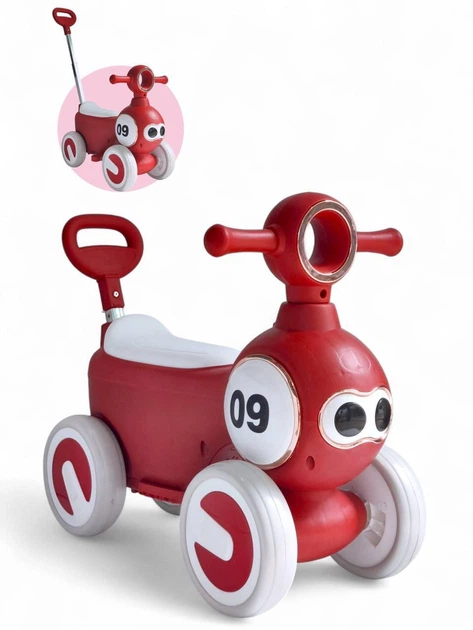 Дитячий толокар Snoopy 09 із батьківською ручкою, підсвіткою та музикою, червоний