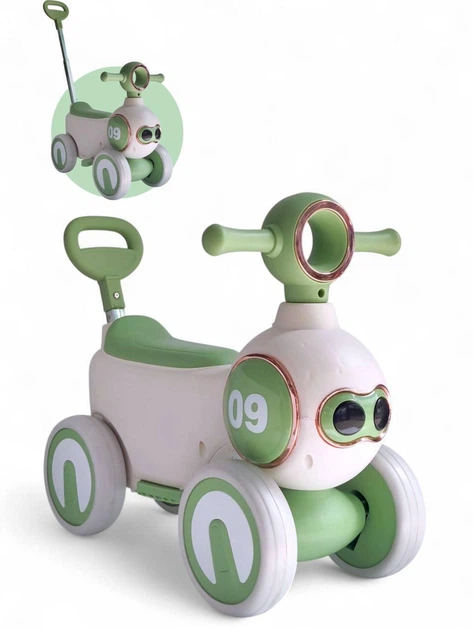 Дитячий толокар Snoopy 09 із батьківською ручкою, підсвіткою та музикою, зелений