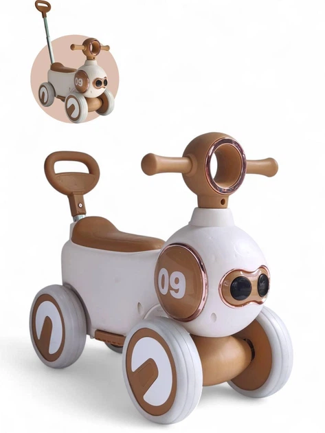 Дитячий толокар Snoopy 09 із батьківською ручкою, підсвіткою та музикою, коричневий