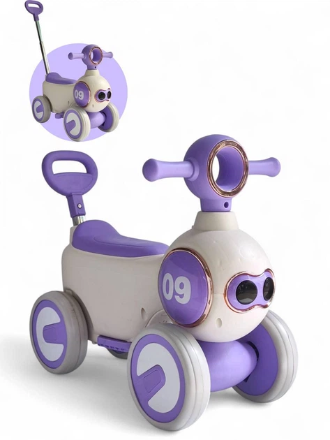 Дитячий толокар Snoopy 09 із батьківською ручкою, підсвіткою та музикою, фіолетовий