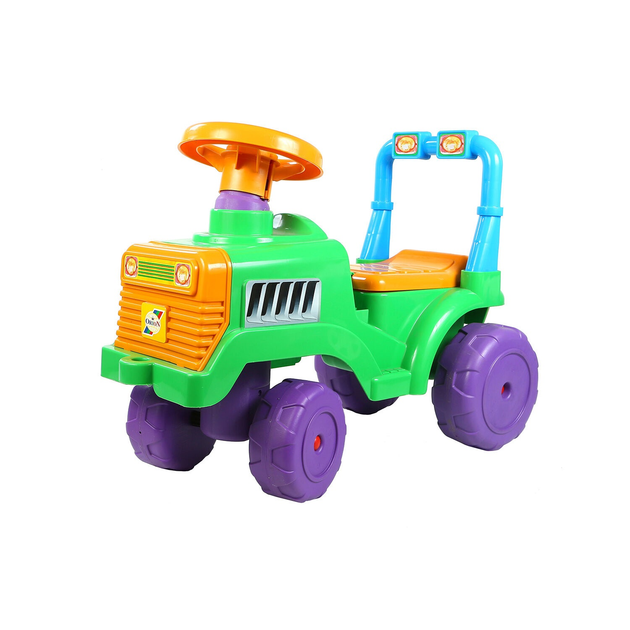 Машинка-толокар Беби Трактор ORION, кермо зі звуковим сигналом, багажник, спинка-ручка. Green with orange (80344)