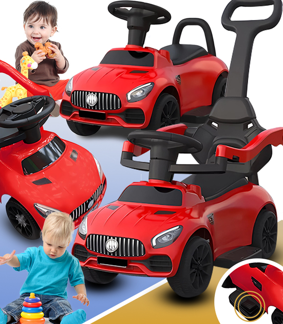 Дитяча машинка-каталка толокар Gordon (батьківська ручка, педаль газу, світлові та звукові ефекти), Червоний