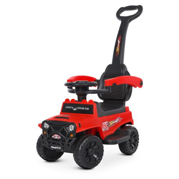 Каталка-толокар M 4803EL-3, батьківська ручка, еко-шкіра, пластик, до 23 кг, червоний