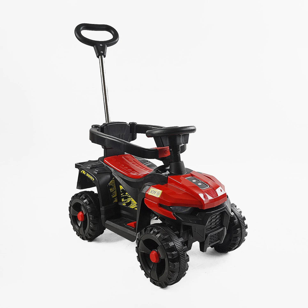 Дитяча каталка толокар машинка джип з мотором JOY М-15463 з батьківською ручкою червоний