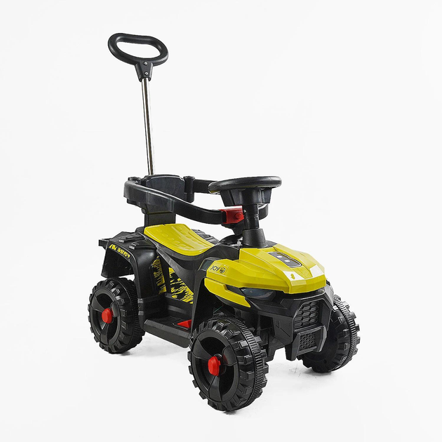 Дитяча каталка толокар машинка джип з мотором JOY М-15527 з батьківською ручкою жовтий