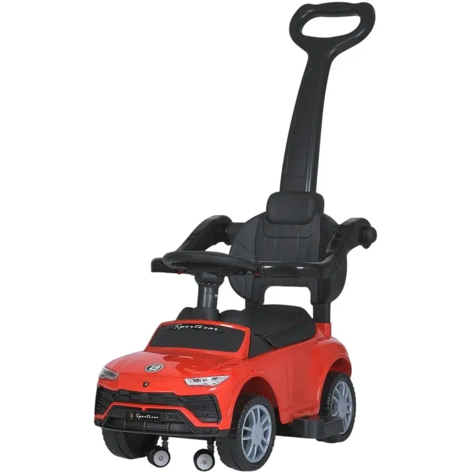 Машинка Bambi Racer 2 в 1 з батьківською ручкою та музичними ефектами, червона