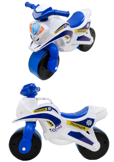 Мотоцикл-каталка Doloni "Байк Police" музичний біло-блакитний 0139/51