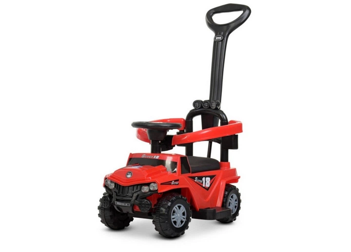 Дитяча каталка-толокар з батьківською ручкою червона для дітей від 1 року з музичними ефектами та фарами (559065)