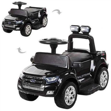 Дитяча каталка-толокар машинка KP01 музичне кермо, шкіра сидіння, EVA колеса, чорний