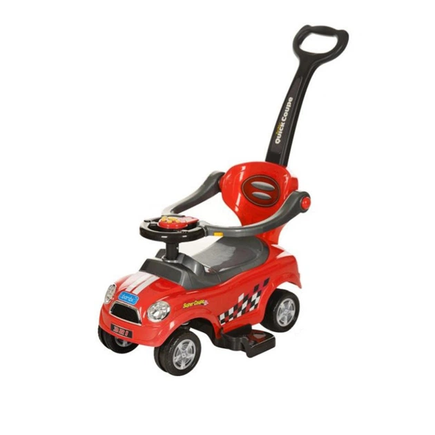 Дитяча каталка-толокар із батьківською ручкою червона для дітей від 2 років машинка з музикою (559063)