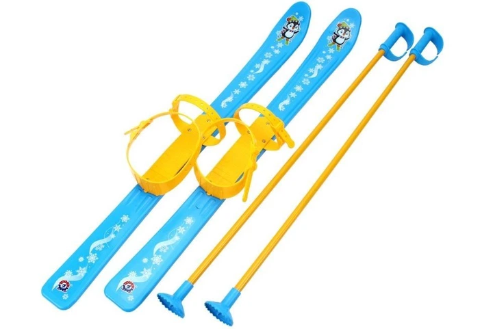 Пластикові лижі дитячі з палицями 76 см ТехноК — набір для катання взимку