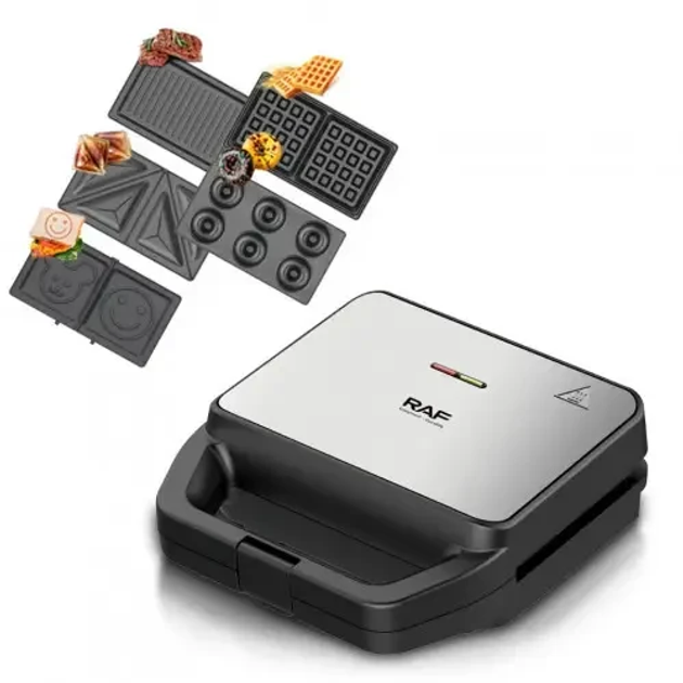 Електричний мультимейкер-гриль 5в1 RAF R.555 800 Вт зі змінними антипригарними насадками для дому