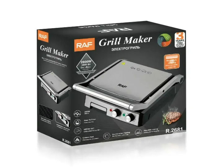 Контактний гриль електричний з антипригарним покриттям 850W RAF R-284T Чорний