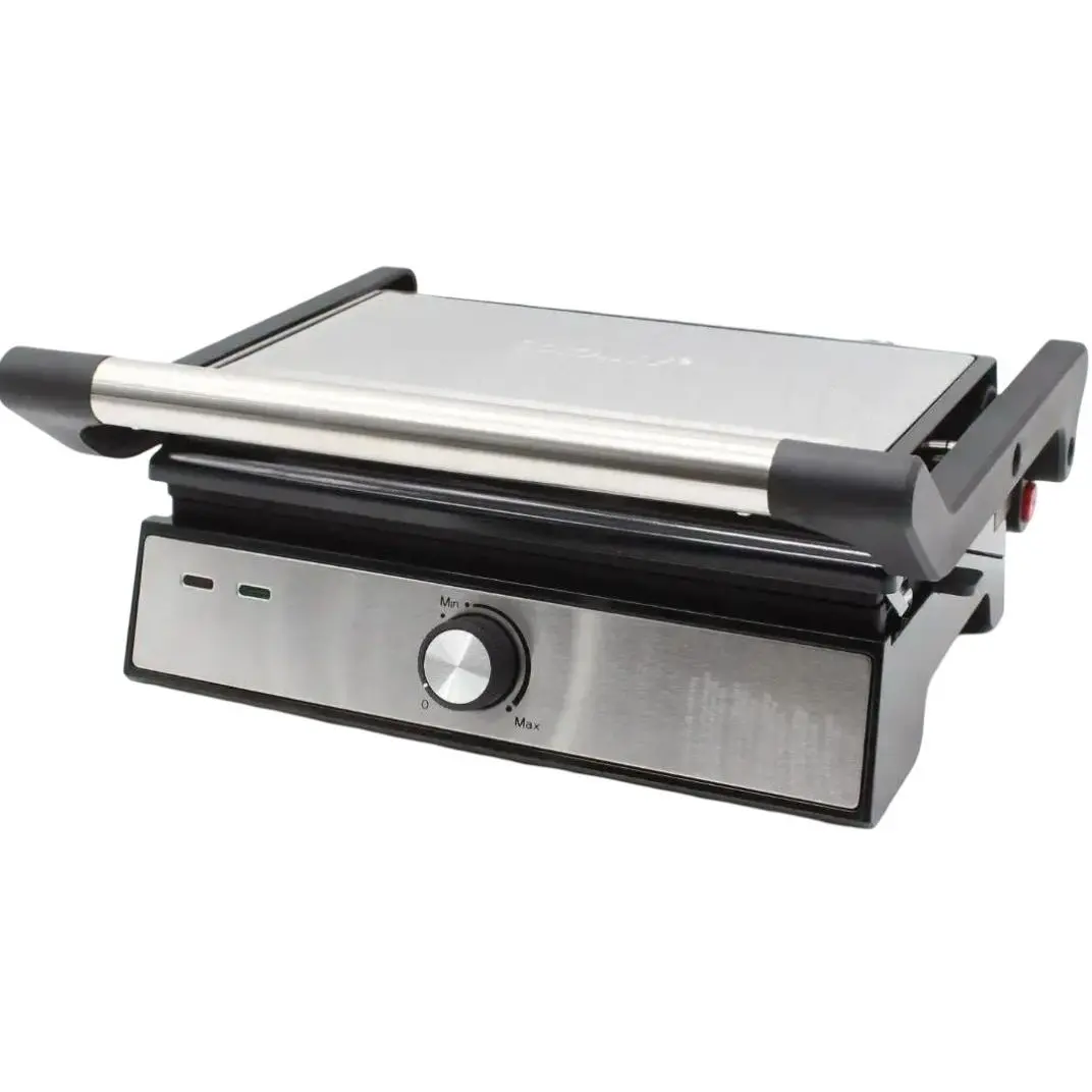 Електрогриль притискний Aigostar Samson 30KLU — універсальний 4в1 прилад для приготування тостів, паніні, сендвічів та страв на грилі; потужність 2000 Вт забезпечує швидкий розігрів і рівномірне пропікання завдяки нагрівальним трубкам у верхній і нижній плитах, а регульований терморегулятор (прибл. 190–230°C) дозволяє отримувати хрустку скоринку та рівномірний прогрів всередині. Плаваючий