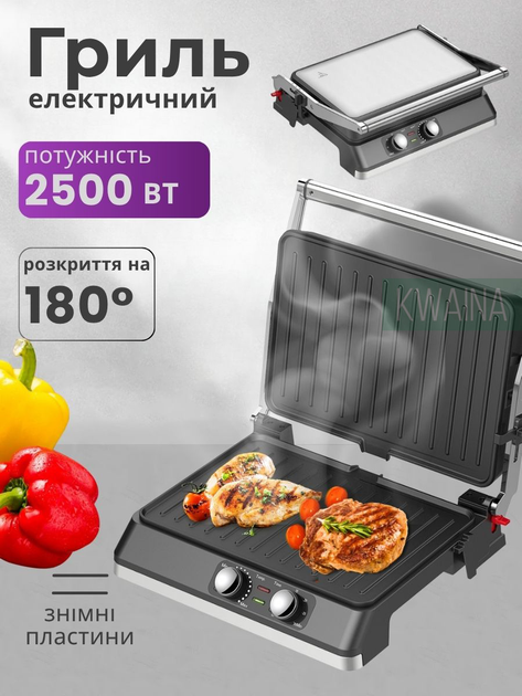 Електрогриль повне розкриття до 180° поверхня для смаження з антипригарним покриттям, таймером, 2500 вт