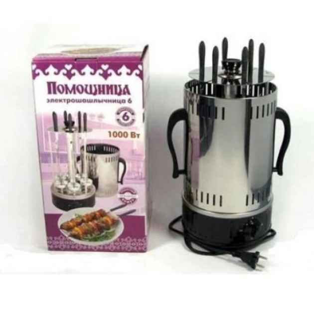 Електрошашличниця Помічниця зі скляною колбою на 6 шампурів з таймером + запасна колба 1000 Вт (5477)