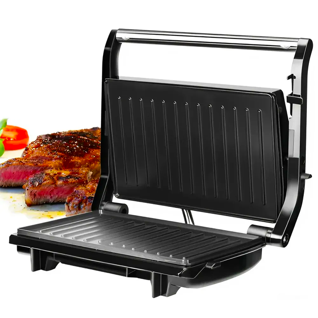 Гриль електричний прижимний двосторонній для дому 1000 Вт бутербродниця сендвічниця з антипригарним покриттям мультимейкер д