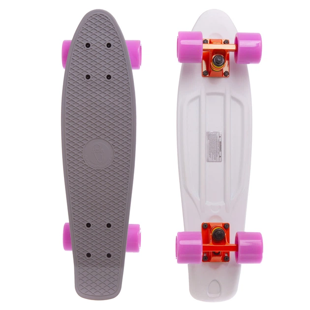 Скейт пенни борд Penny My Go Fish Skateboards RUBBER SOFT TWIN 410-1 22" Grey-White, лиловые колеса