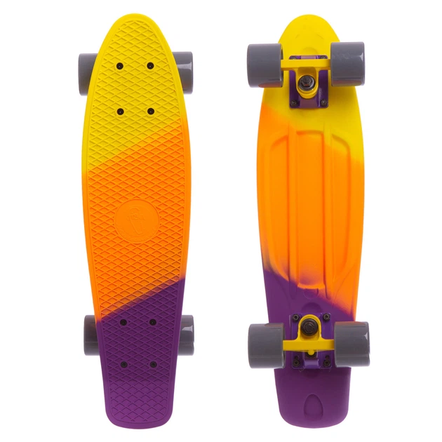 Скейт пенни борд Penny My Go Fish Skateboards RUBBER SOFT 412-9 22" Yellow-Orange-Purple, серые колеса