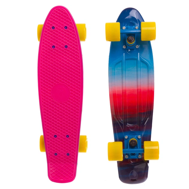 Скейт пенні борд Penny My Go Fish Skateboards ABSTRACT 4442-5 22" Pink Blue-Red, жовті колеса