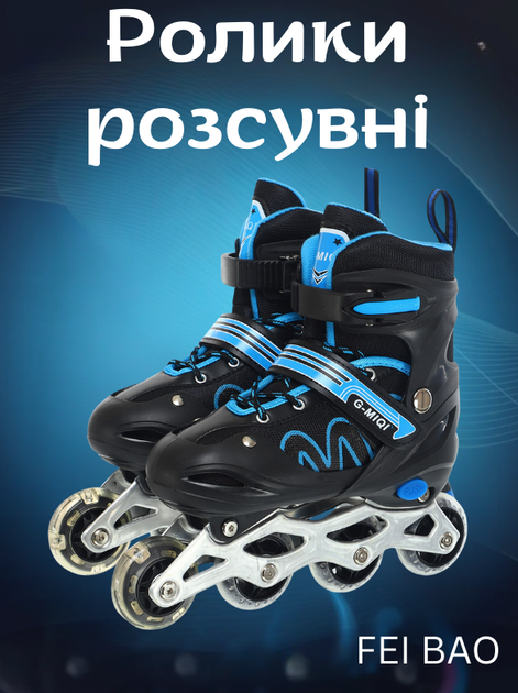 Роликові ковзани розсувні FEI BAO SK-189 S (31-34) (PL, PVC, колесо-PVC світ., Синій-чорний)