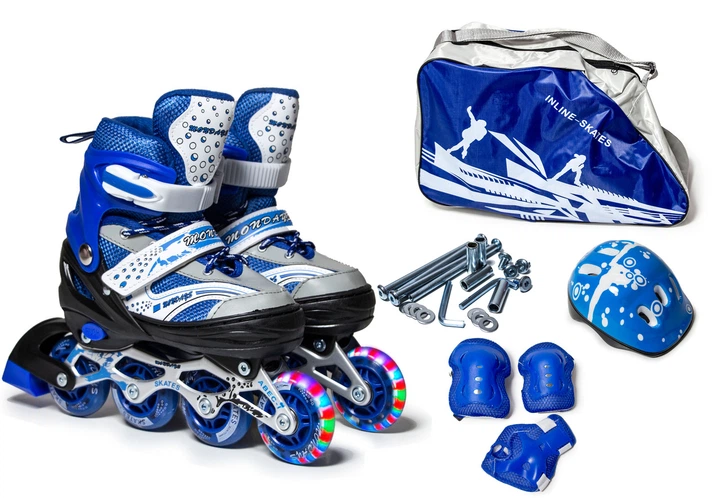 Набір дитячих роликів для хлопчика з захистом і шоломом Happy Синій розмір 30-33