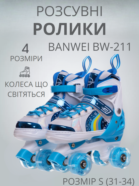 Ролики квади розсувні Banwei BW-211 S(31-34) (поліестер, пластик, метал, колеса-PU світяться, синій)