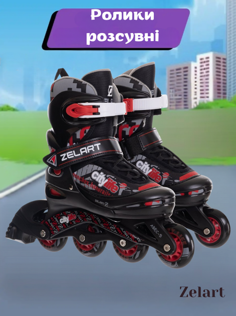 Роликові ковзани розсувні дитячі Zelart Z-2923 M чорний-червоний