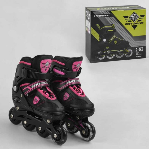 Ролики 20233-S Best Roller /розмір 31-34/ РОЖОВІ, колеса PU, Переднє колесо світло, d коліс – 6