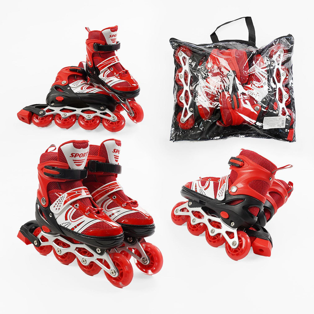 Ролики 19338-S /розмір 29-33/ колір – червоний (6) колеса PU, устілка 18-20 см, переднє колесо світло, d – 6.5 см, в сумці