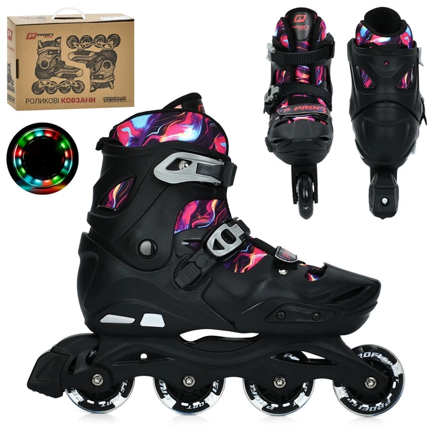 Дитячі розсувні ролики Profi Sport A4159, PU колеса, що світяться, розмір 37-41, Чорно-білі