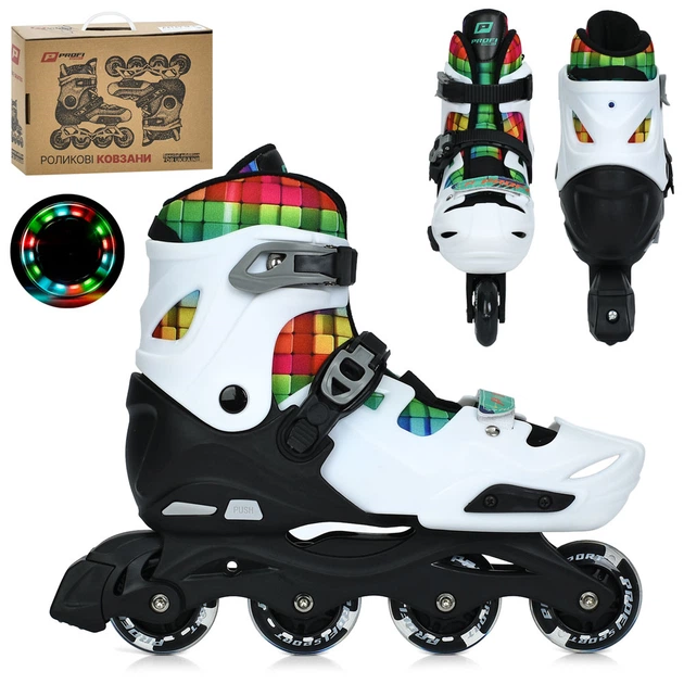Дитячі розсувні ролики Profi Sport A4158, PU колеса, що світяться, розмір 37-41, Чорно-білі