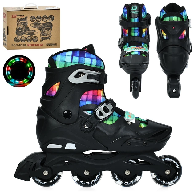 Дитячі розсувні ролики Profi Sport A4159, PU колеса, що світяться, розмір 37-41, Чорно-білі