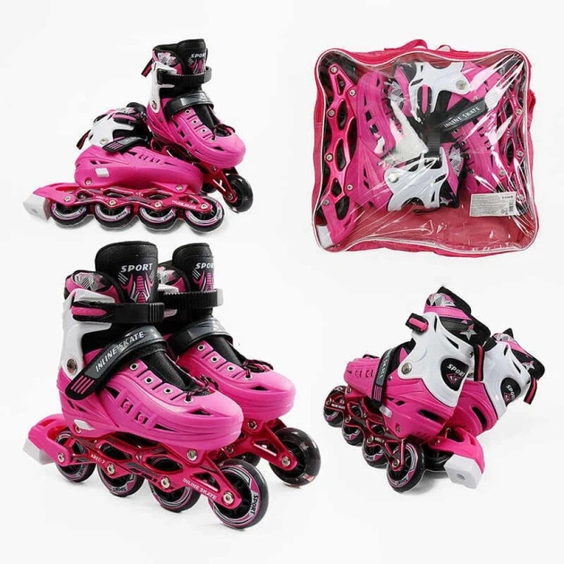 Ролики розсувні для дівчинки D-9244 Skate Inline, розмір 34-38 колеса PU, устілка 20-23 см, рожеві