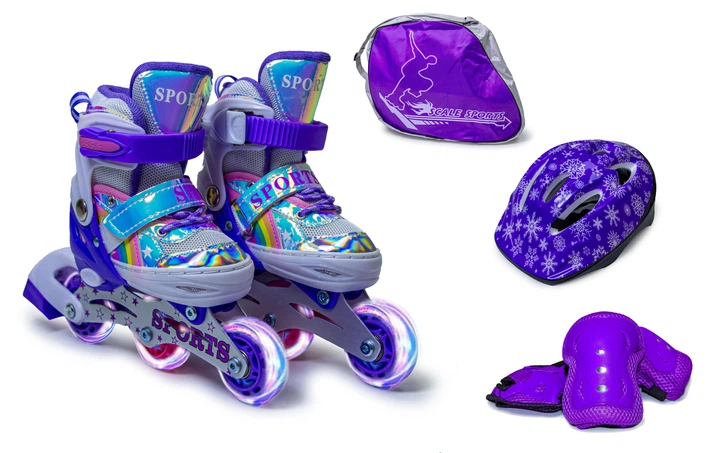 Комплект дитячих роликів Scale Sports Rainbow. Усі колеса світяться. Фіолетовий. Розмір 27-30