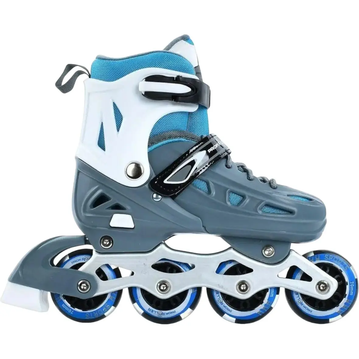 Ролики Profi A4151-M-G 22.5 см, заднє гальмо, поліуретан, шнурівка + бакля, 35-38 сіро-блакитні
