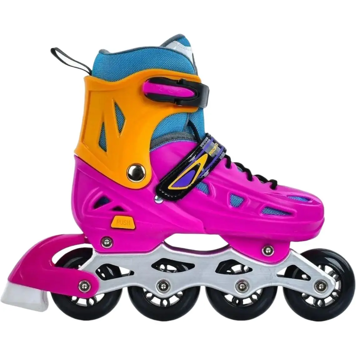 Ролики Profi A4151-M-V 22.5 см, заднє гальмо, поліуретан, шнурівка + бакля, 35-38 фіолетово-помаранчеві
