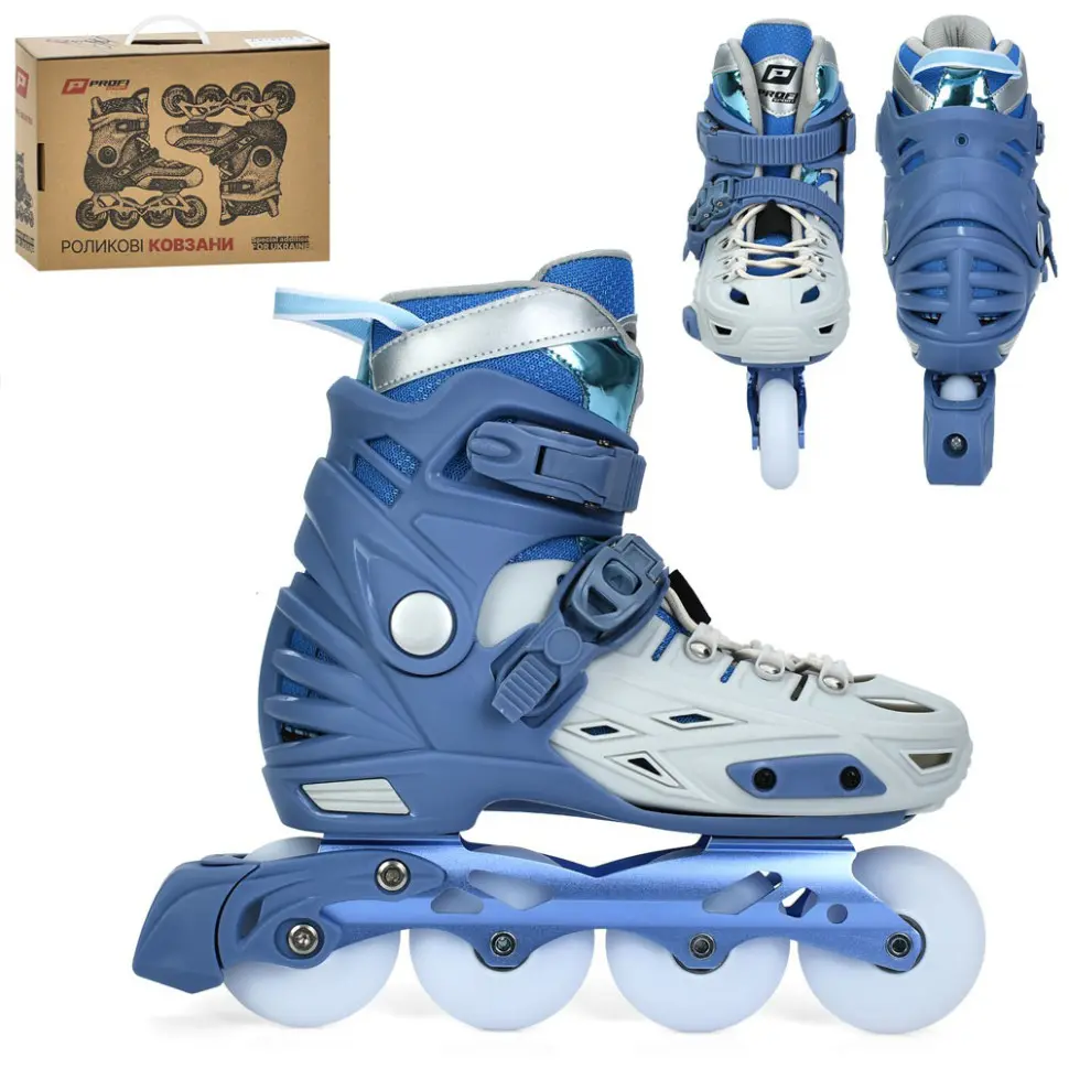 Ролики Profi A4150-M-BL поліуретан, розсувні, в один ряд, 35-38, шнурівка + бакля, розмір коліс 70 мм сині