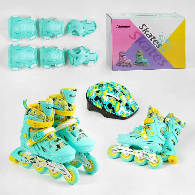 Ролики з захистом 30202-М розмір 35-38 колір БІРЮЗОВИЙ, колеса PU, ПЕРЕДНЕ КОЛЕСО СВІТЛО, стелька – 18.5-20.5 см, d коліс –